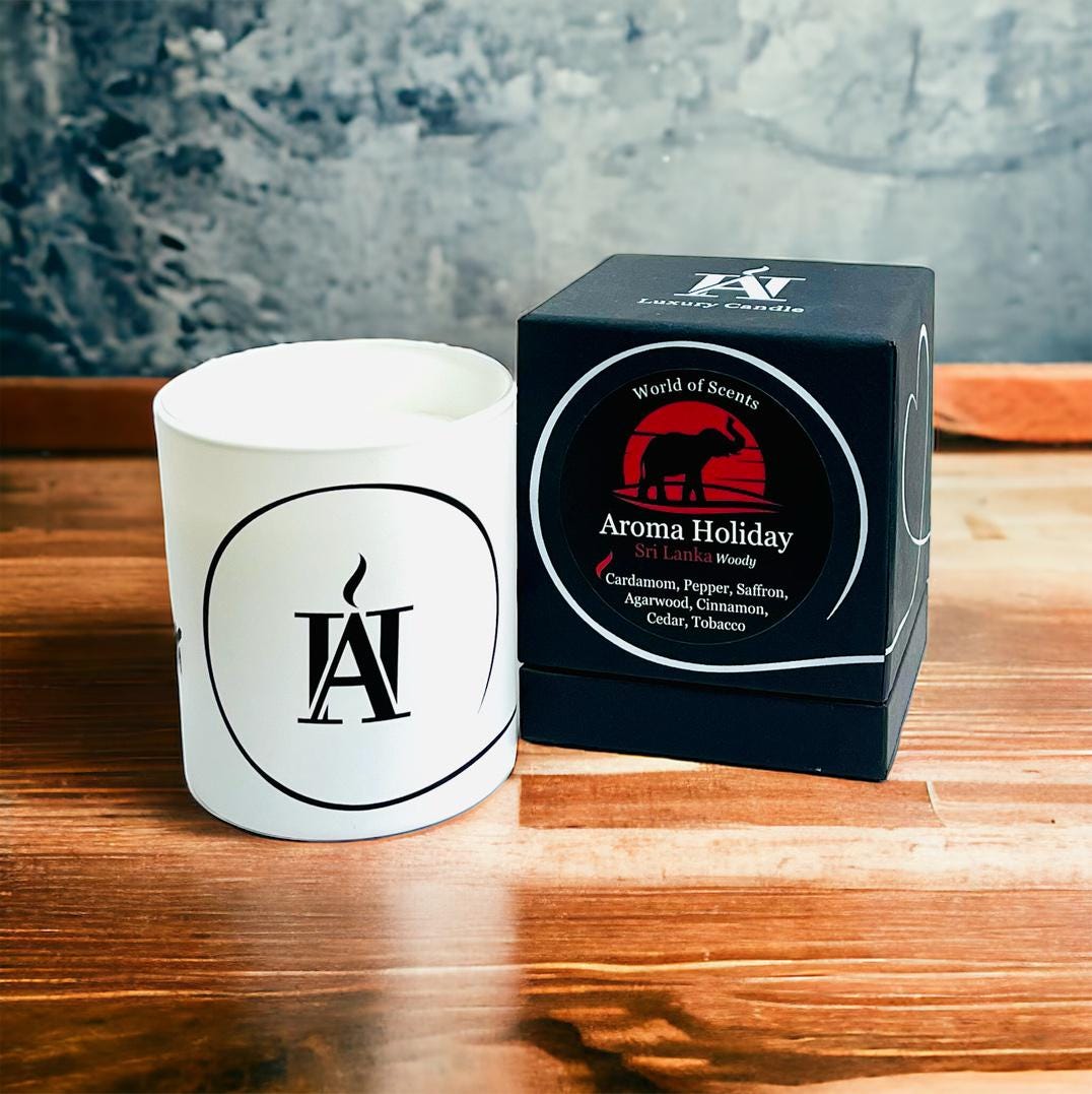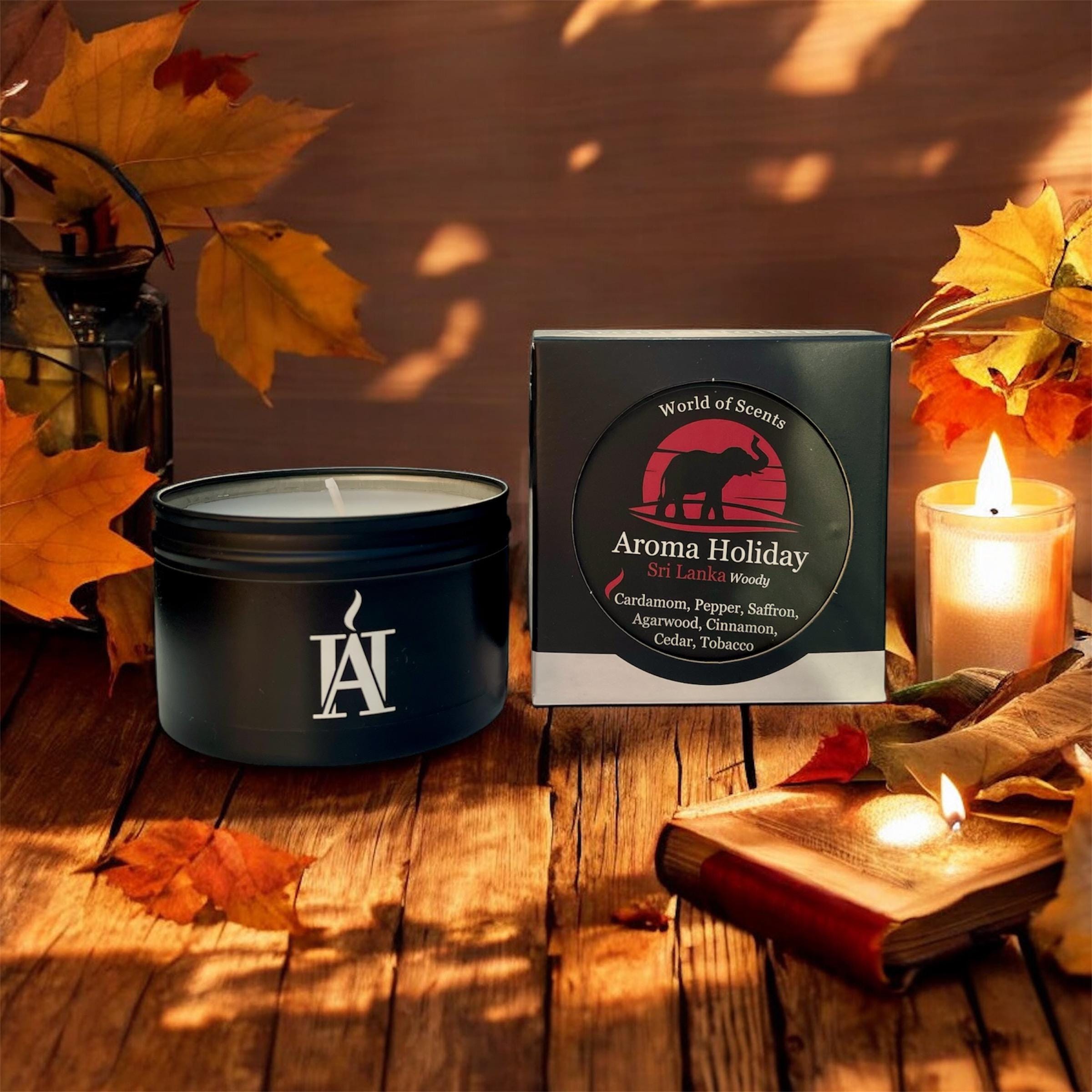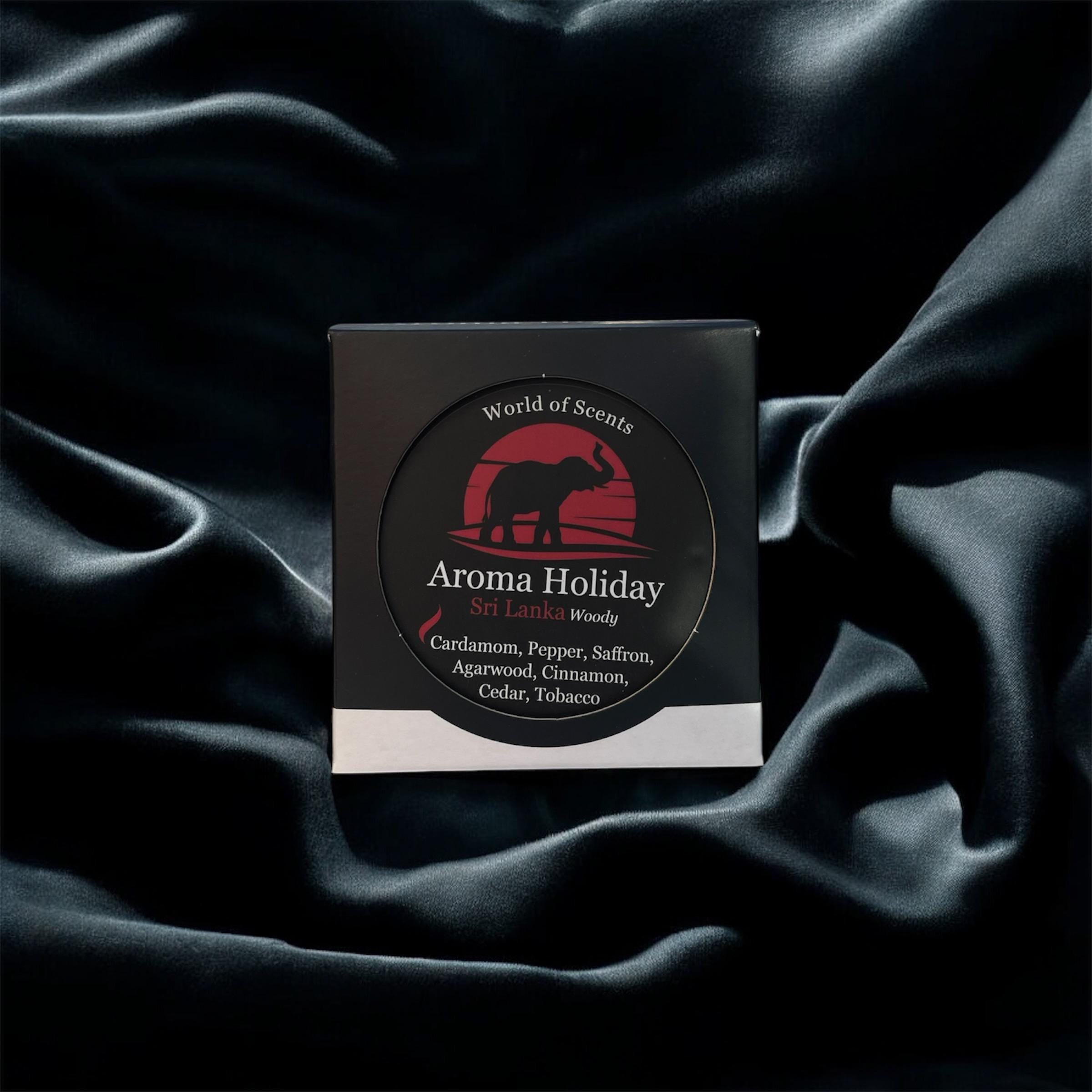 A full-on spiced wood blends with a hint of fresh cardamom and black pepper on a heart of patchouli, cedar, saffron, cinnamon, and a rich ambery base of leather, agarwood, and tobacco. Each time you light this candle, you'll be transported to the beautiful Sultry Sri Lanka.