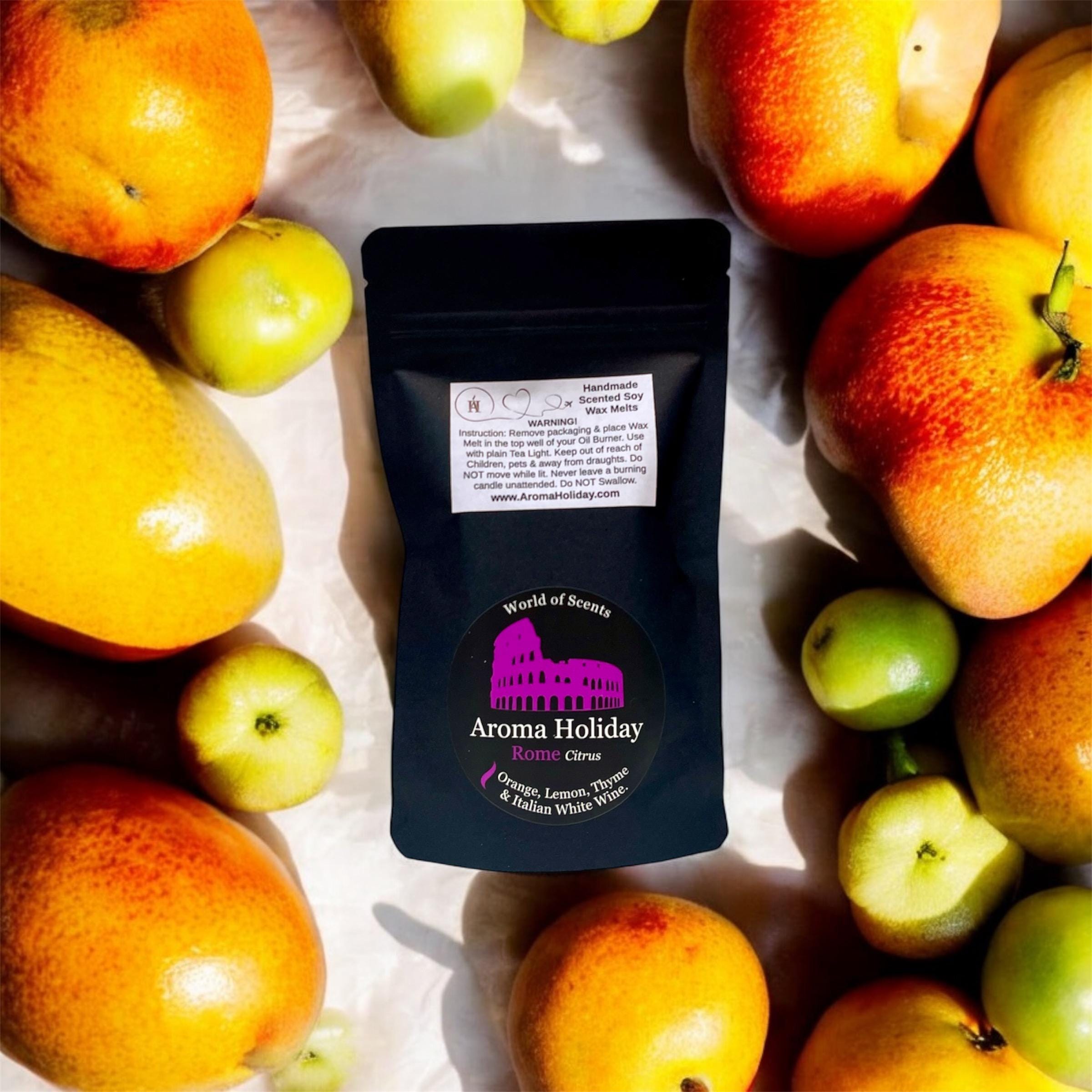 A medley of sweet fruity notes! Damson plum, blackberry, apple, raspberry, blackcurrant, dew-fruit, grapefruit and sweet lemon. Where the dry, crisp notes of Vin Blanc, intertwine with delicate herbal nuances of fragrant thyme. Finally, supported by hints of precious woods and musk. Each time you melt this wax melt it will take you on a Citrus journey transports you to the heart of an Italian fruit festival.