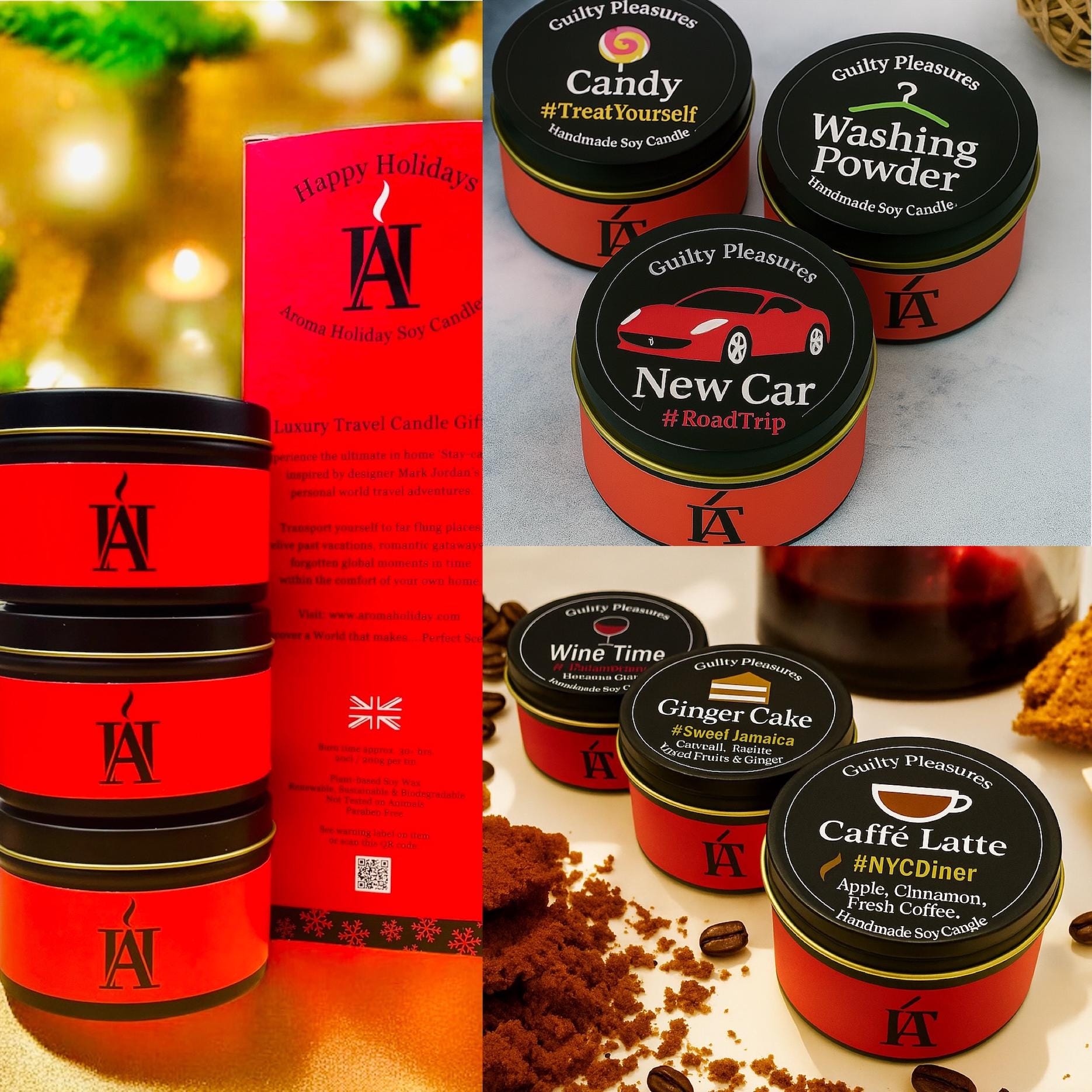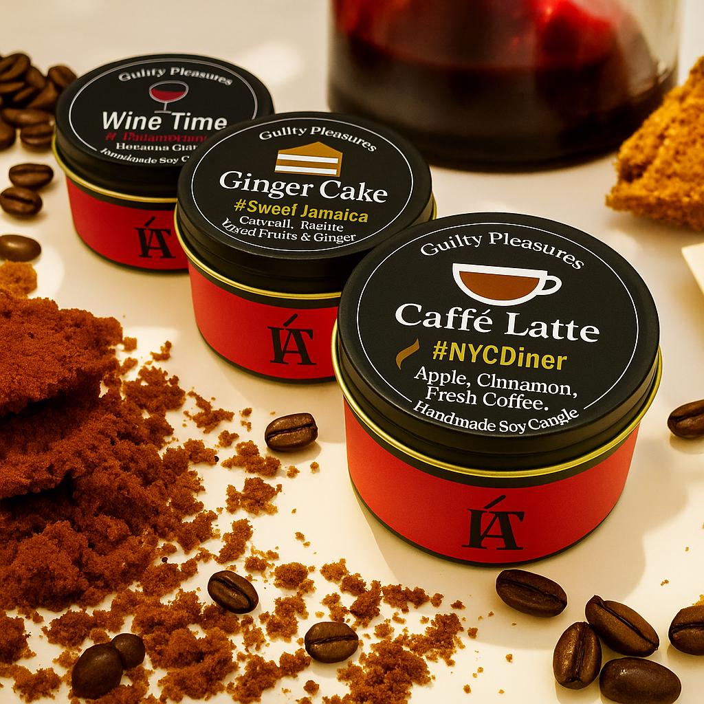 Guilty Pleasures Christmas Candle Gift Set β Soy Wax | Handmade in the UK | Caffe Latte, Wine Time & Jamaican Ginger Cake Scents π